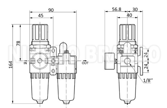 Afmeting vanAC-serieFilterregulator smeermiddel: